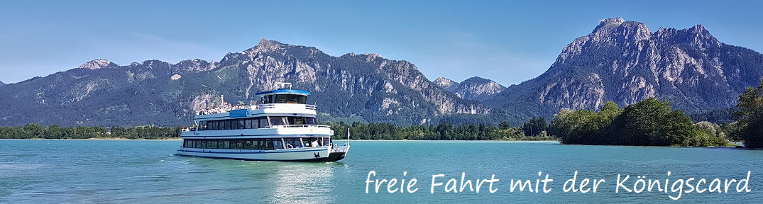 Bitte beachten Sie: Im Preis bereits enthalten ist bei uns die KönigsCard für freie Fahrt / freien Eintritt / kostenlose Nutzung von über 200 Erlebnisangeboten in der Region für die ganze Familie, wie Bergbahnen, öffentlichem Nahverkehr, Schwimmbädern/Saunen, Museen, Bootstouren, Klettergärten, Minigolfanlagen, Gokart-Bahn, Skiverleih und vieles vieles mehr.
